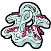 A ghost-shaped marsmallow crushed and filled with high fructose berry cream.