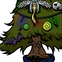 A new species of mimic? Necromatic gardening gone wrong? Eldritch horror possessing an "immortal" tree rather than a short-lived meat body? First wave of an invasion of the winter holiday season by the forces of Halloween?