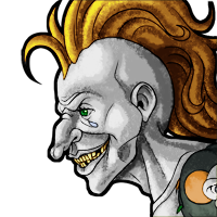 As a wee lad, this clown once entered Gaycee's truck in Onyx City - and barely escaped days later, leaving one gnawed-off arm handcuffed to the tattooing chair. Ever since, he's roamed Niflheim with most of his heavily inked body on display, giggling as he visits pain via fisticuffs to anyone or anything that looks at him funny. Or looks at him at all, really.